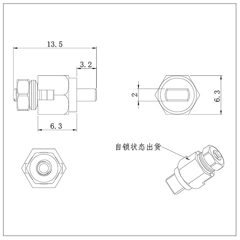 使用方法:臺燈金屬支架轉(zhuǎn)軸的軸套為六邊形,軸件銑扁,裝配時從臺燈活動關(guān)節(jié)一側(cè)壓入即可使用,軸件固定,軸套轉(zhuǎn)動。